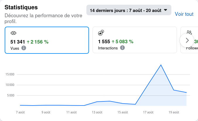 Ma page est donc passée en version pro, ce qui me donne accÚs à des statistiques détaillées.